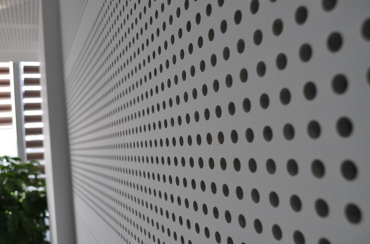 FC穿孔吸音板吸音好、產品接近自然,對人體無害,且裝飾品性強,且有吸音、靜音、降噪、阻燃、隔熱、保溫等功能,更有現代裝飾藝術效果。色彩花型豐富,可直接做飾面材料,施工簡單:直接粘貼或紋釘槍固定。訂購熱線:18810335188