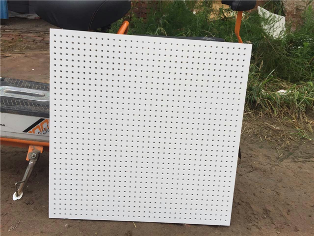 硅酸鈣穿孔吸音板是由基板硅酸鈣板加工成小板,經過穿孔機穿孔,砂光,噴涂,背面貼無紡布,硅酸鈣穿孔板優點有防水,防火,強度大,能用于地下室,地鐵,體育館等項目。訂購熱線:18810335188
