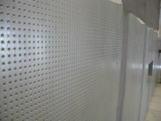 防爆板的學名叫纖維水泥復合鋼板,是由增強纖維水泥板表面加壓厚度為0.5mm穿孔的鍍鋅鋼板構成的耐火防爆材料。主要用于防爆隔墻、防爆天花板、防爆排煙風管、電纜管、防爆電纜保護、防爆門和鋼結構防爆保護等多種系統。