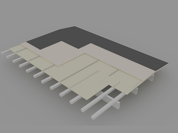 我公司生產的纖維增強水泥板泄爆屋面板,采用雙層9mm防爆泄壓板做屋面板,用方管做檁條,用自攻釘把泄爆板固定在檁條上,上面做防水與保溫即可。